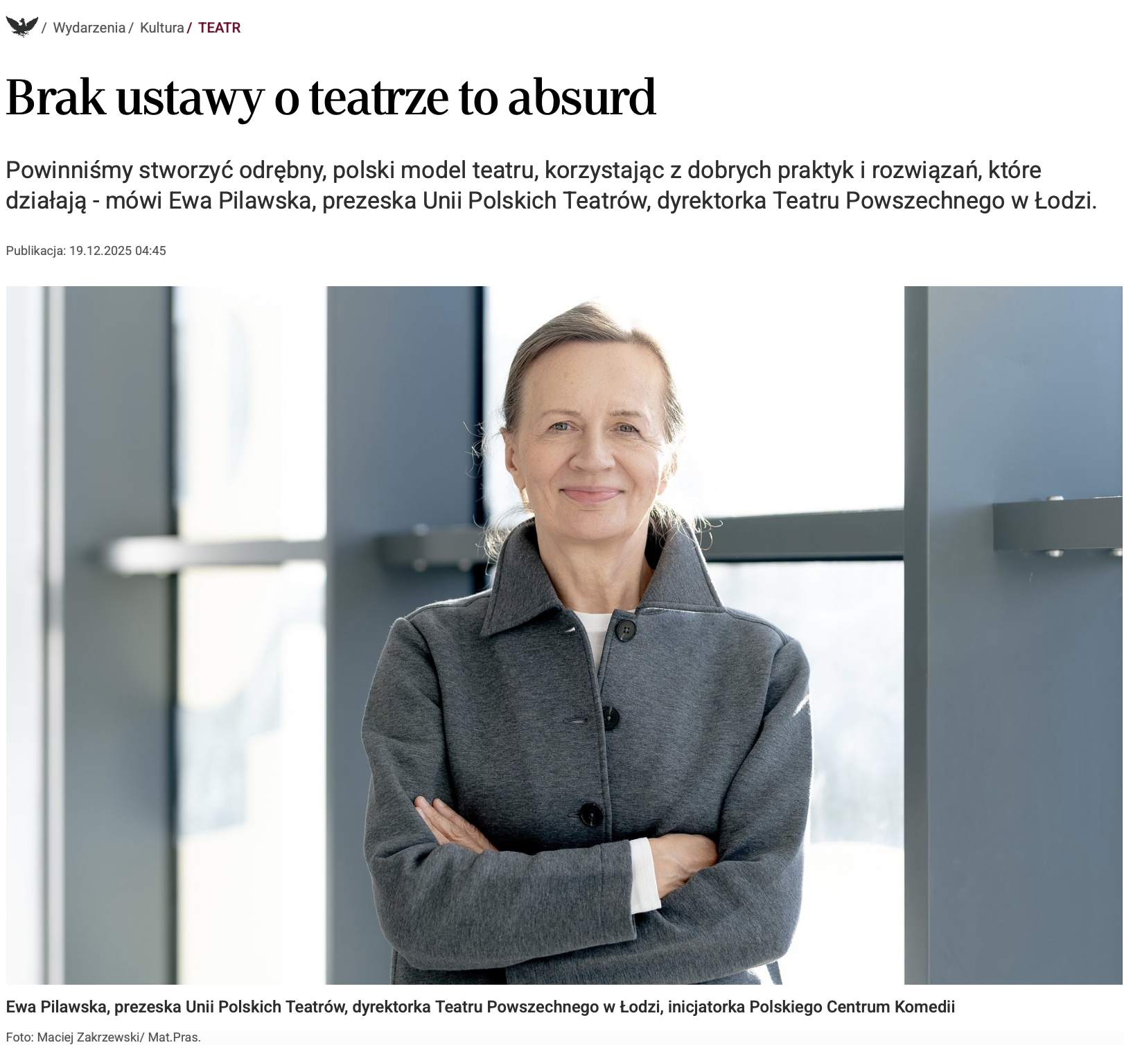 Rozmowa dostępna jest pod adresem: https://www.rp.pl/teatr/art43520751-brak-ustawy-o-teatrze-to-absurd